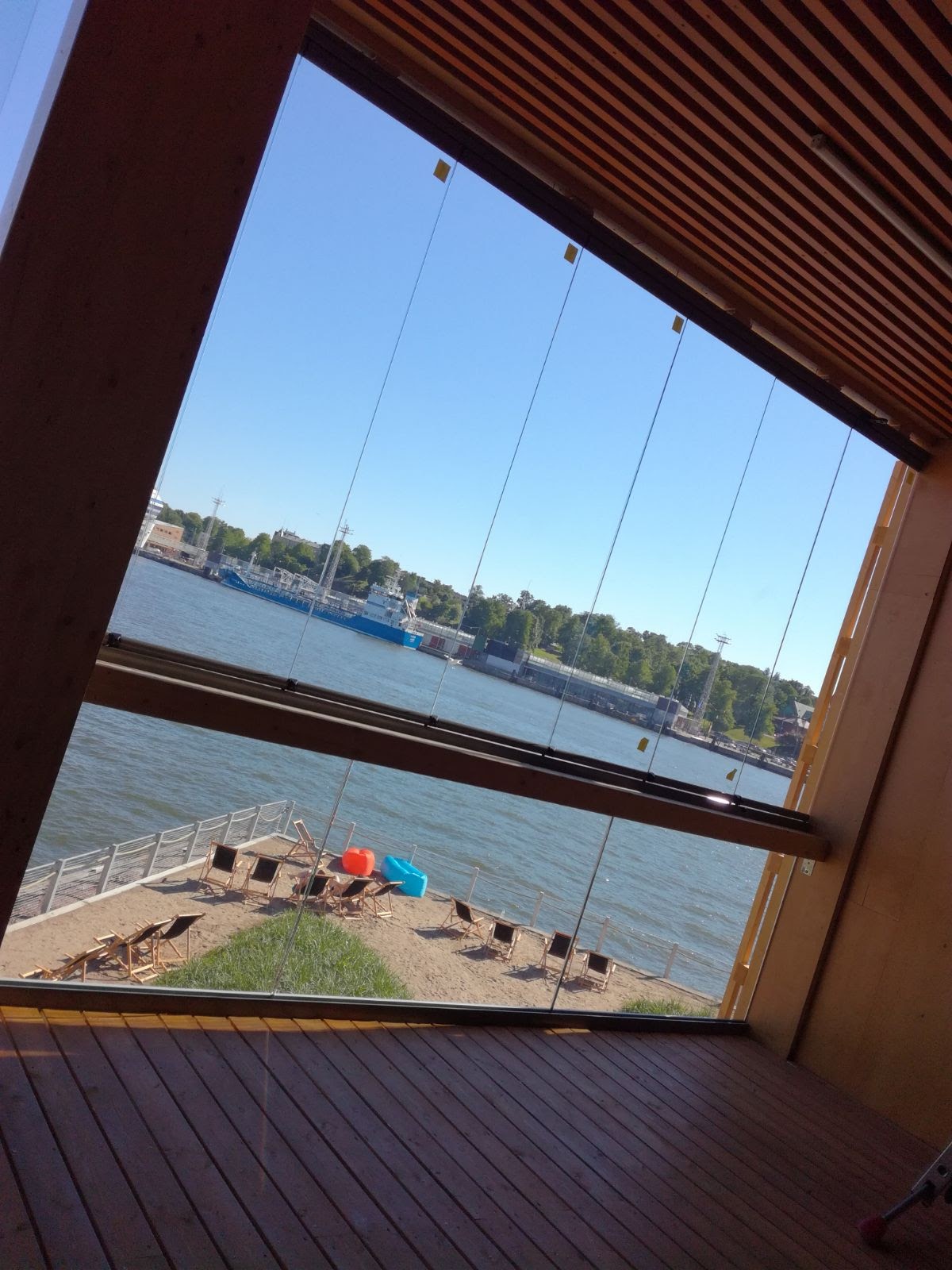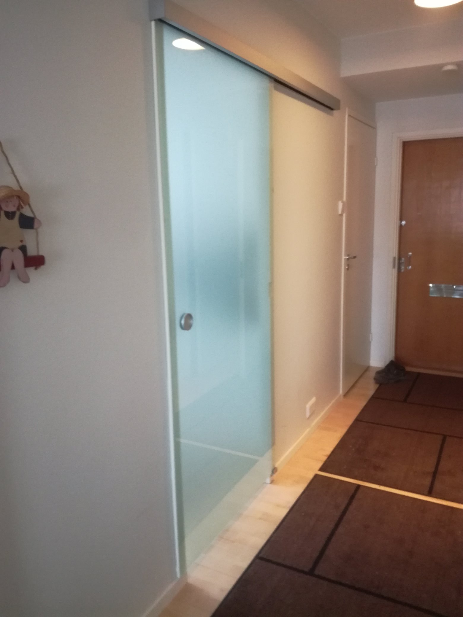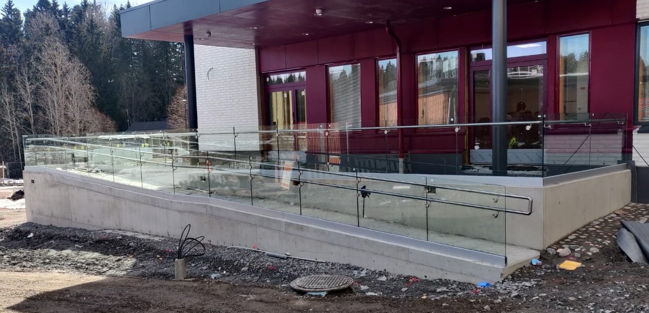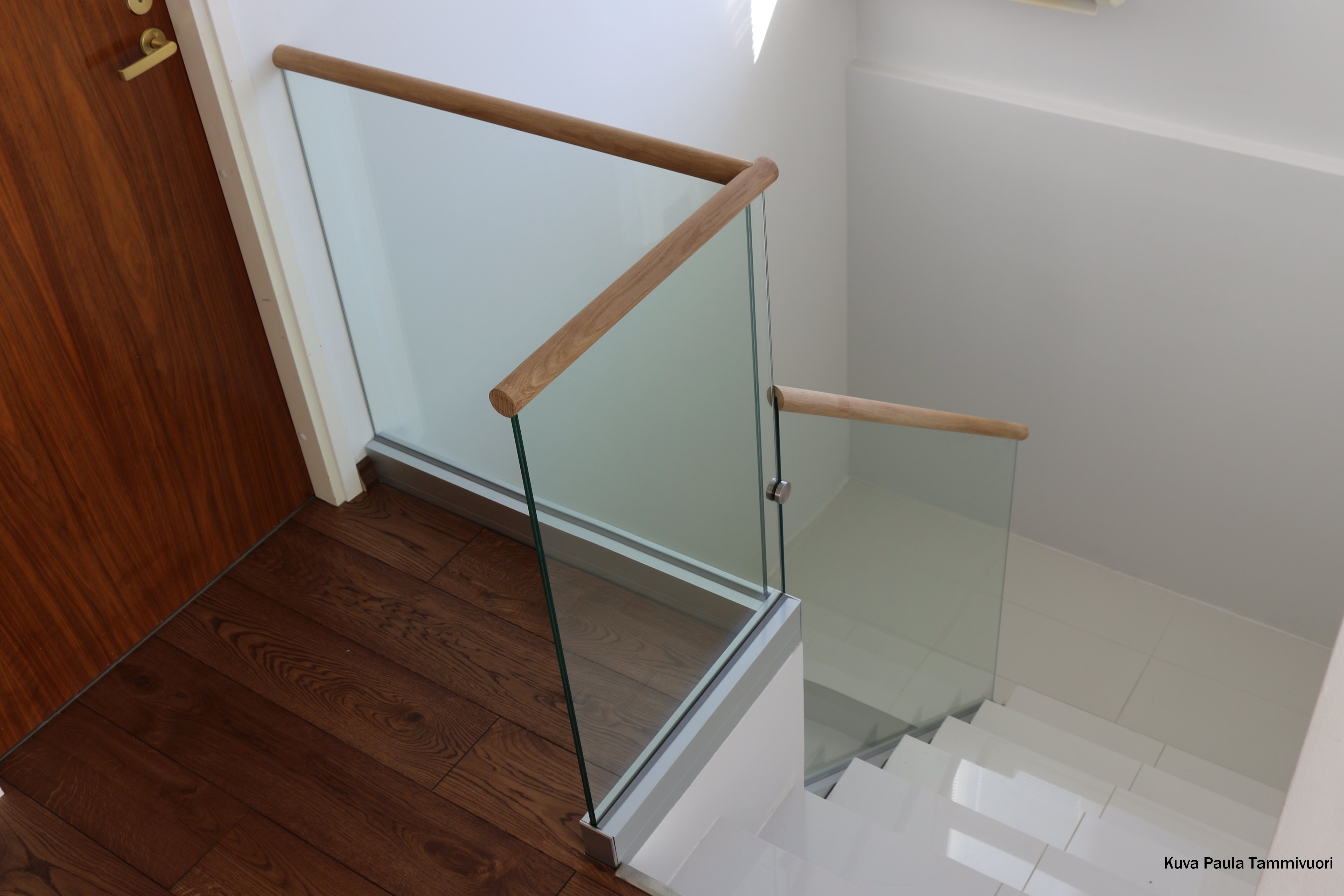 Tässä tolpattomassa kaiteessa on käsijohde lasikaiteen vieressä.