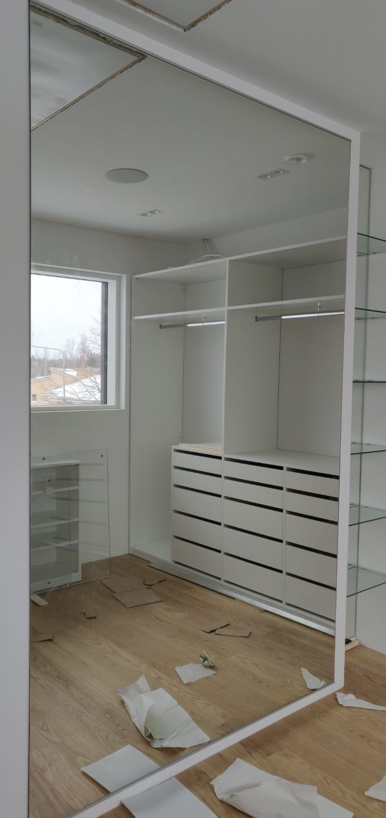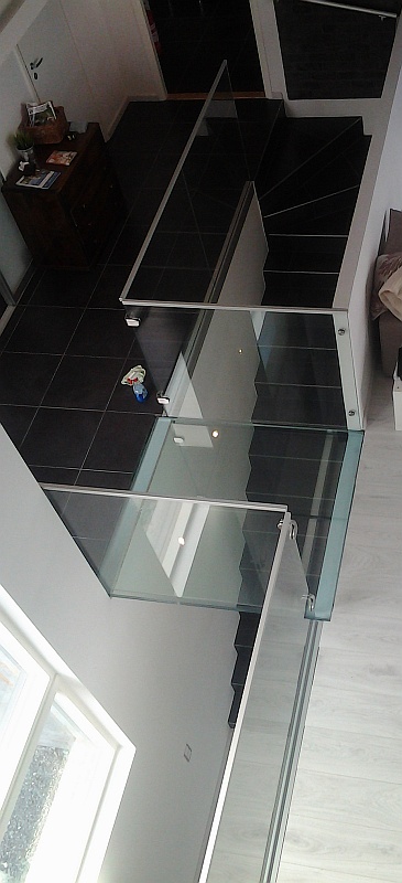 Lasilattian läpi pääsee valoa myös alempaan kerrokseen.